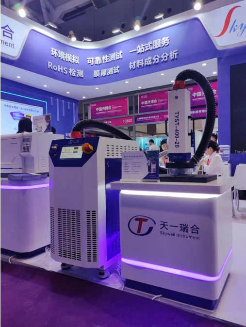 2023 年9 月6日,第二十四届中国国际广电博览会在深圳·国际会展中心(10号馆)隆重举办。本次天一瑞合(展位号:10B26)本次展会我司重点展示了应用于于光模块、半导体、滤波器、电源管理芯片、传感器等领域的超快速冷热冲击试验机器新产品,下面让我们一起来回顾天一瑞合的精彩瞬间!